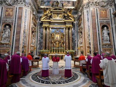 البابا لاوُن الرابع عشر يضع خدمته بين يدي العذراء في بازيليك القديسة مريم الكبرى