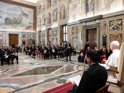 تابع الأب الأقدس يقول إنّ حضوركم بيننا اليوم ليس فقط علامة ملموسة على اهتمام بلدانكم بالكرسي الرسولي، بل هو بالنسبة لي عطية ثمينة، تتيح لي أن أجدّد التعبير عن رغبة الكنيسة – ورغبتي الشخصيّة – في بلوغ كل شعب ومعانقة كل إنسان على وجه هذه الأرض، متعطّش ومعوز إلى الحقيقة، والعدالة، والسلام! وإنّ خبرة حياتي نوعًا ما التي تشكّلت بين أميركا الشمالية وأميركا الجنوبية وأوروبا، هي بدورها تجسيد لتلك الرغبة العميقة في تجاوز الحدود والانفتاح على الشعوب والثقافات المختلفة.