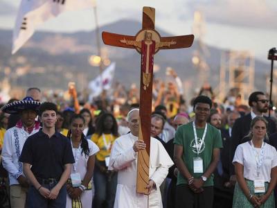 أيّها الشّباب الأعزّاء، أمام آلام العالم وآماله، لِنُثَبِّت نظرنا في يسوع المسيح. فعندما كان على وشك الموت على الصّليب، سلَّم مريم العذراء إلى يوحنّا أُمًّا له، وسلَّمه لها ابنًا لها. عطيّة المحبّة الأسمى هذه هي لكلّ تلميذ، ولكلّ واحدٍ منّا. لذلك، أدعوكم إلى أن تقبلوا هذا الرّباط المقدّس مع مريم، الأمّ الممتلئة حنانًا وحكمة، فتنمّوا ذلك بصورة خاصّة بصلاة المسبحة الورديّة. وهكذا، في كلّ ظرفٍ من ظروف الحياة، سنختبر أنّنا لسنا أبدًا وحدنا، بل نحن دائمًا أبناء يحبّهم الله، ويغفر لهم، ويشجّعهم. ولذلك، بفرحٍ، أنتُم أَيضًا تَشهَدون!