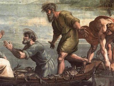 إنها جماعة صغيرة، مجروحة، لا تستطيع شيئًا لوحدها "ولٰكِنَّهم لم يُصيبوا في تِلكَ اللَّيلَةِ شَيئًا" (يو ٢١: ٣)، تمر في ظلام الليل. لكنها أيضًا جماعة، حين تطيع كلمة الرب، تصبح قوية: الشبكة لا تتمزق (يو ٢١: ١١)، لأن هذه الجماعة الجديدة متينة، مؤسسة على عطية الرب "فصَعِدَ سِمْعانُ بُطرُس إِلى السَّفينَة، وجذَبَ الشَّبَكَةَ إِلى البَرّ، وقدِ ٱمتَلأَت بِمائَةٍ وثَلاثٍ وخَمسينَ سَمَكَةً مِنَ السَّمَكِ الكَبير، ولم تَتَمزَّقِ الشَّبَكَةُ معَ هٰذا العَدَدِ الكَثير". (يو ٢١: ١١).