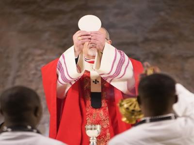خلال تأمله في مقطع الإنجيل الذي يروي استهزاء الجنود بيسوع (متى 27: 27-31)، سلط غبطته الضوء على اختلاف المواقف بين منظور الناس ومنظور يسوع في لحظة الألم، والذي دفعهم إلى اختيار الإفراج عن باراباس، الذي يعني اسمه (ابن الأب)، بدلاً من يسوع، ابن الله الأزلي، الذي رضي أن يبذل نفسه وأن يسير درب الآلام لخلاص العالم أجمع.